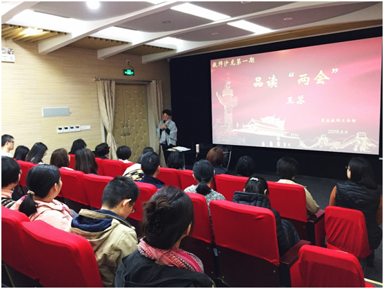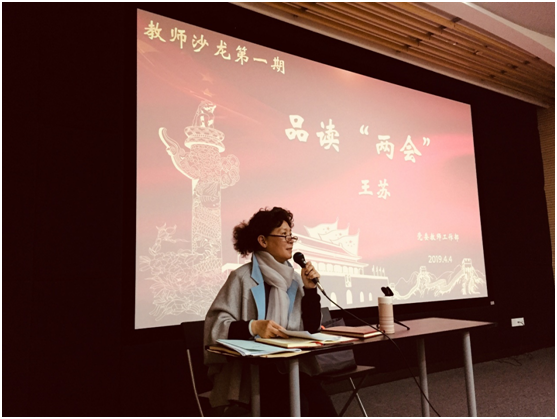 4月4日下午,由校教师工作部主办的教师沙龙活动在图书馆多功能厅举行,首期沙龙由全国政协委员、我校工会专职副主席王苏老师主讲。校党委副书记胡敏,党委副书记、纪委书记周银娥及四十多名教职工参加。活动由党委教师工作部副部长徐莹主持。