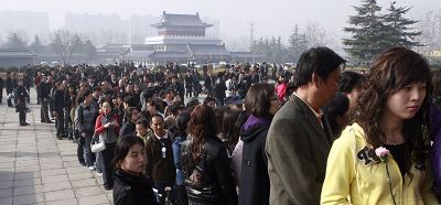 昨日早上9点30分,灵堂的门才缓缓打开,前来追悼的人手持一枝粉色的康乃馨,四个并做一排,按顺序依次进入。鞠躬悼念,将鲜花放在水晶棺前。灵堂里四处是绽放的白色百合,各种各样的花圈堆满了整间屋子。一张李钰穿着紫色民国服装的剧照高高挂在百合之中。上面的黑色横幅上赫然写着几个白色的大字“笑靥如花送李钰”。李钰的遗体静静躺在透明的水晶棺中,她身着白色的西式小礼服,头上戴了精致的小皇冠,手握一枝粉色康乃馨放在胸前。