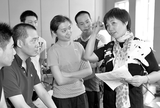 这几天在莲花路上海戏校排练厅内,参演新版京剧《死水微澜》的青年演员们正与乐队进行最后的合成。导演田蔓莎一会儿在本子上做着记录,一会儿又把演员集合起来说些什么。这位昔日红遍了大江南北的川剧《死水微澜》主演,正在给演员们当“陪练”,时而示范“幺姑”,时而装扮“傻子”,忙得不亦乐乎。