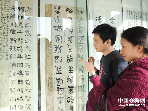 中国台湾网1月5日上海消息 树绿、花开——虽是初冬,却如暖秋。人文艺术氛围让人浸心——上海戏剧学院建院65周年的映像定格在2010年12月1日。笔者应邀参加了校庆的部分活动。在图书馆,上海戏剧学院、上海市书法家协会联合举办的第二届研究生班、第一届本科书法班举办的书法作品毕业展览吸引了不少校友、艺术家、学者和参观者。