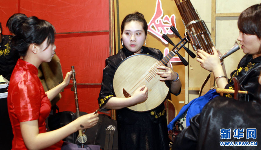 杨梅在京剧清唱《太真外传》选段中演奏。 新华社记者张明摄