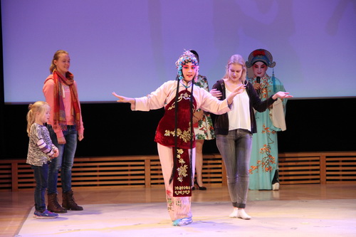 京剧演员与瑞典观众进行现场互动。