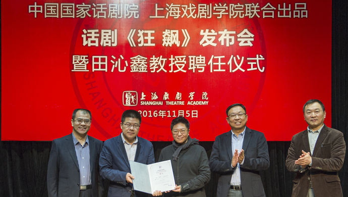 下月起,上海戏剧学院将与国家话剧院合作,共同打造2017届表演系毕业班毕业公演话剧《狂飙》,田沁鑫执导。2001年,田沁鑫自编自导的《狂飙》作为向建党80周年献礼重点剧目面世。全剧以《国歌》作者田汉一生的事业和爱情为主线,向观众讲述了《义勇军进行曲》词作者身份以外的田汉,由辛柏青、朱媛媛、陶虹、袁泉等主演,“这部剧青春荡漾,在全国二十个城市巡演,让观众认识到田汉作为国歌词作者、革命战士以外的戏剧家、大艺术家身份。剧本是我写的,看了田汉16卷文集,融入他的四段情感。”