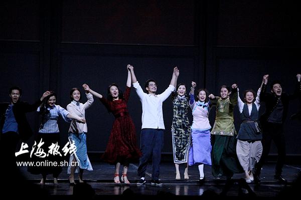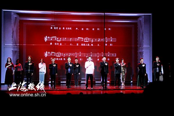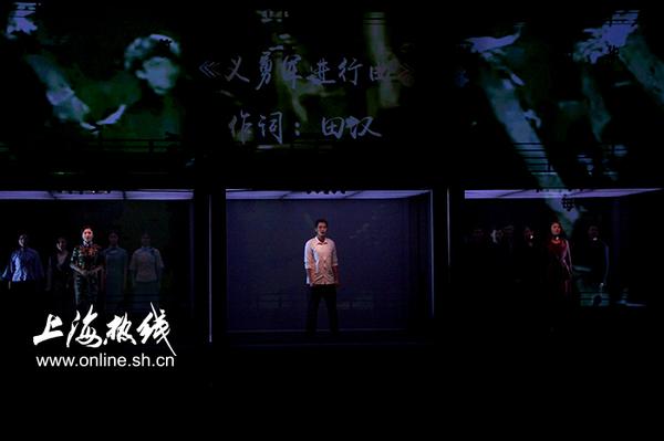 上海热线讯,昨晚(5月5日),上海戏剧学院实验剧院灯火辉煌,星光熠熠,2017上海·静安现代戏剧谷正式开幕,由金世佳主演的开幕大戏《狂飙》震撼上演,全剧以《国歌》作者田汉一生的事业和爱情为主线,再现了戏剧家田汉的心路历程,为人们讲述了一个《国歌》作者以外的田汉,将现场观众带入到了那个令人热血沸腾的“狂飙”年代。而当全剧的压轴大戏——田汉作词的《义勇军进行曲》旋律响起,台上演员携手高歌,那份激情也感染了全场观众的心。