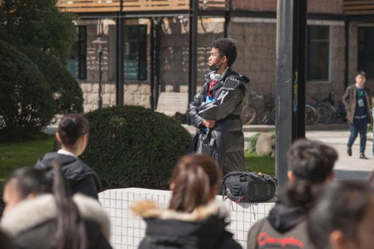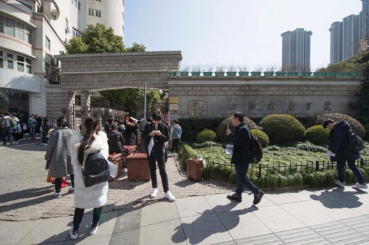上戏延安西路校门口外,考生们在这里做准备。