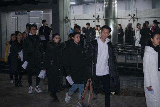 根据专业不同,在考务的带领下考生分流走向自己的考场。