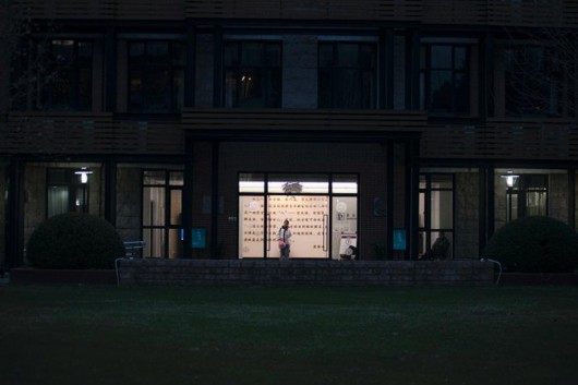 晚上7点天已经黑了,夜场考试从这时开始。晚上天气寒冷,学校安排了考生到室内侯考区报道,排队一起进入考场。最后一场考试要到晚上八点半。