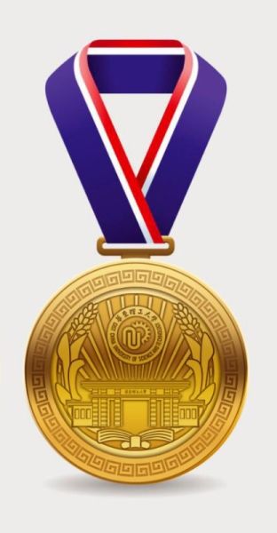 该纪念章采用精铜材质,正圆形设计。环周以回纹为饰,是学校重要历史建筑的经典纹样,简洁的造型方法,规整的轮廓框架,譬喻旺盛的生命力,表达源远流长、生生不息之意。