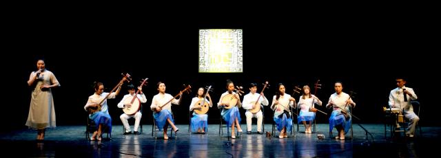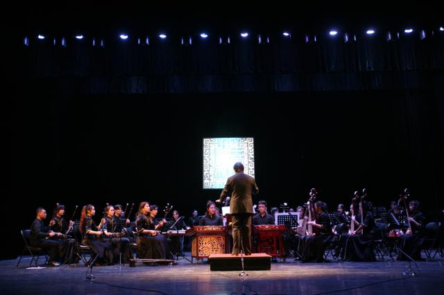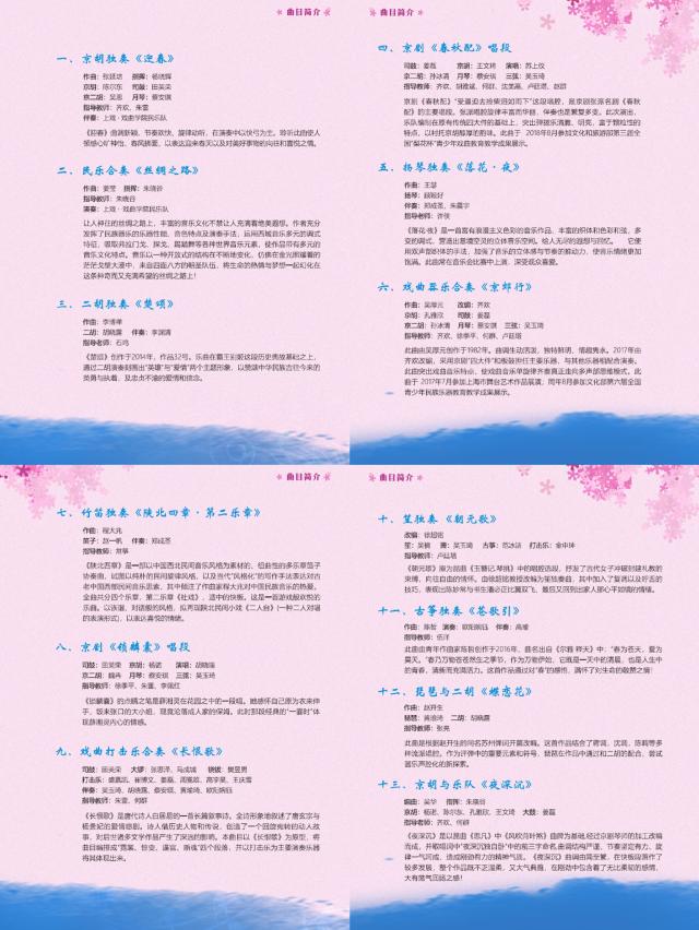晚上7点,2019届戏曲音乐本科毕业生《春日景和戏曲音乐会系列之十五》音乐会开场,节奏欢快的京胡独奏《迎春》、民乐团合奏《丝绸之路》、戏曲打击乐合奏《长恨歌》……13个节目轮番上演,现场的院团领导和观众听得十分入迷。