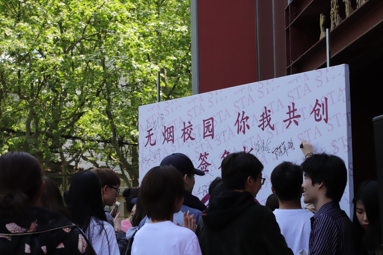 4月18日中午,为贯彻落实《上海市公共场所控制吸烟条例》,控制和减少吸烟危害,净化校园环境,引导上戏师生培养和树立文明、健康、科学的生活方式,我校教师工作部、学生工作部、后勤保卫处联合向上戏师生共同发出一场 “无烟上戏,清新校园”的控烟主题倡议活动。