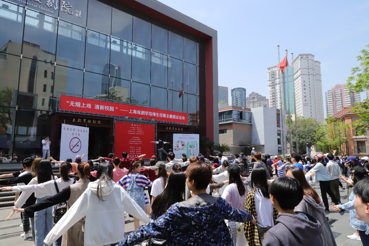 上戏实验剧院前广场,春意盎然,师生齐聚。他们庄严宣誓:“以不吸烟为荣,以不文明吸烟为耻,坚决抵制不良吸烟现象,积极倡导健康生活方式;全体师生,同心同德;上下联动,以身作则;远离烟草,清新你我;上戏有爱,至善至美。”