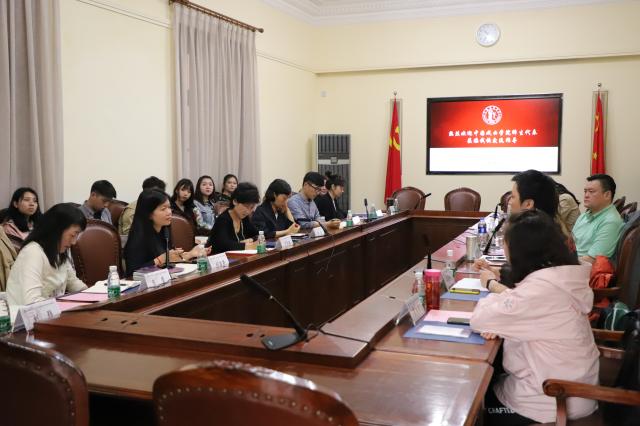 座谈会上,我校学工部副部长李冬梅老师首先向师生代表团的到来表示热烈欢迎,她向代表团介绍了学工部、团委的基本情况和我校“戏剧+思政”的学生工作特色。中国戏曲学院学工部副部长王莹老师对我校的接待表示感谢,同时介绍了中国戏曲学院的学生工作和思路。双方就新时代的学生思政工作、第二课堂建设、学生就业、辅导员队伍建设等问题交换了意见并进行了深入探讨,双方共同表示要相互借鉴学生工作管理经验,寻找今后开展合作交流项目的可能性、探索两校校园文化建设的新契机、新思路和新方向,建立并长久发展两校间学工、团学队伍的深厚友谊。