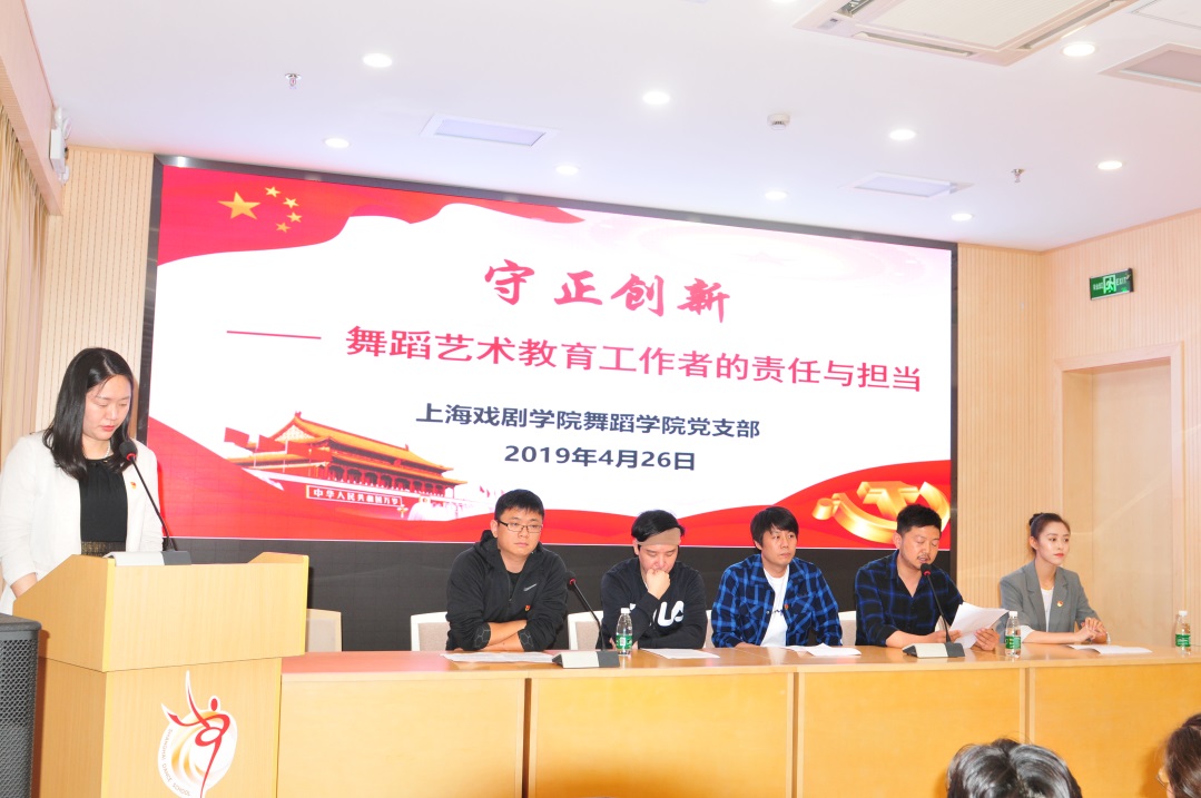 为学习贯彻党的十九大精神,推进“两学一做”学习教育学习教育常态化制度化,加强“三会一课”等党的组织生活制度的落实,进一步提升党的组织生活质量,提高组织生活的吸引力和感染力,促进我校基层党组织之间的经验交流,在校党委的领导下,党委组织部自去年11月起,开展基层党支部主题党日和组织生活现场展示观摩活动。继戏曲学院党支部、创意学院党支部、表演系党支部展示后,4月26日下午,舞蹈学院党支部在上海戏剧学院虹桥路校区舞蹈学校报告厅举行主题党日展示活动。