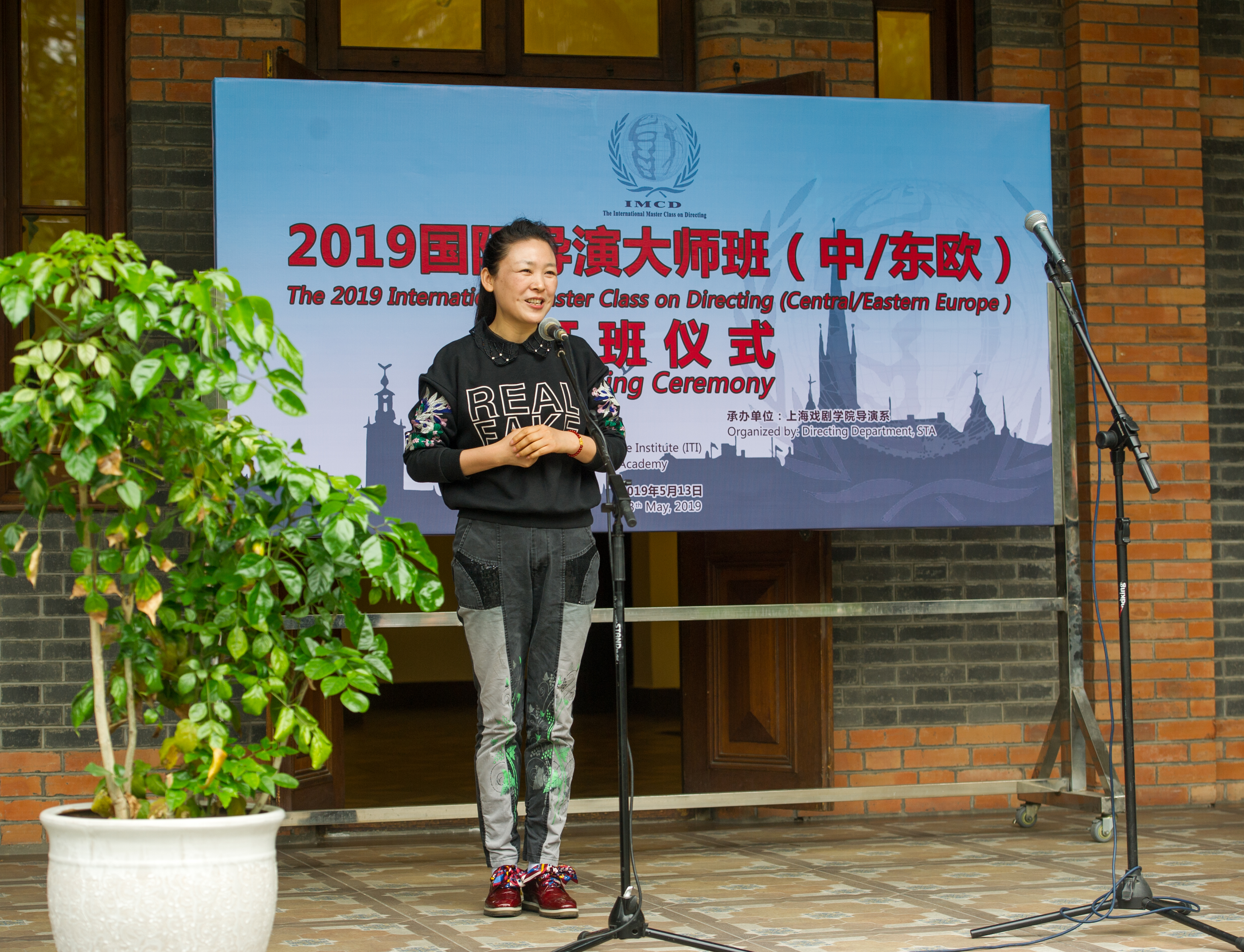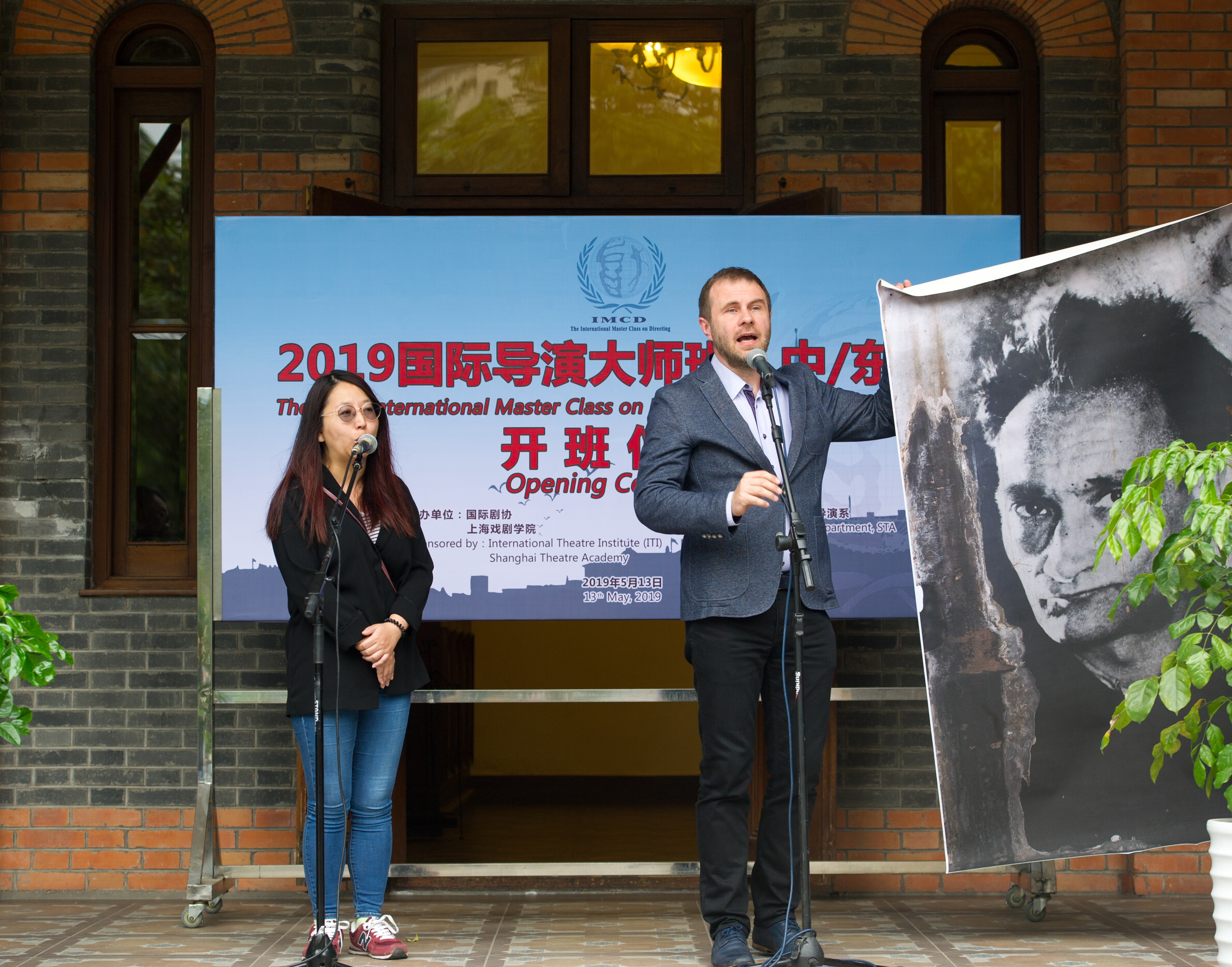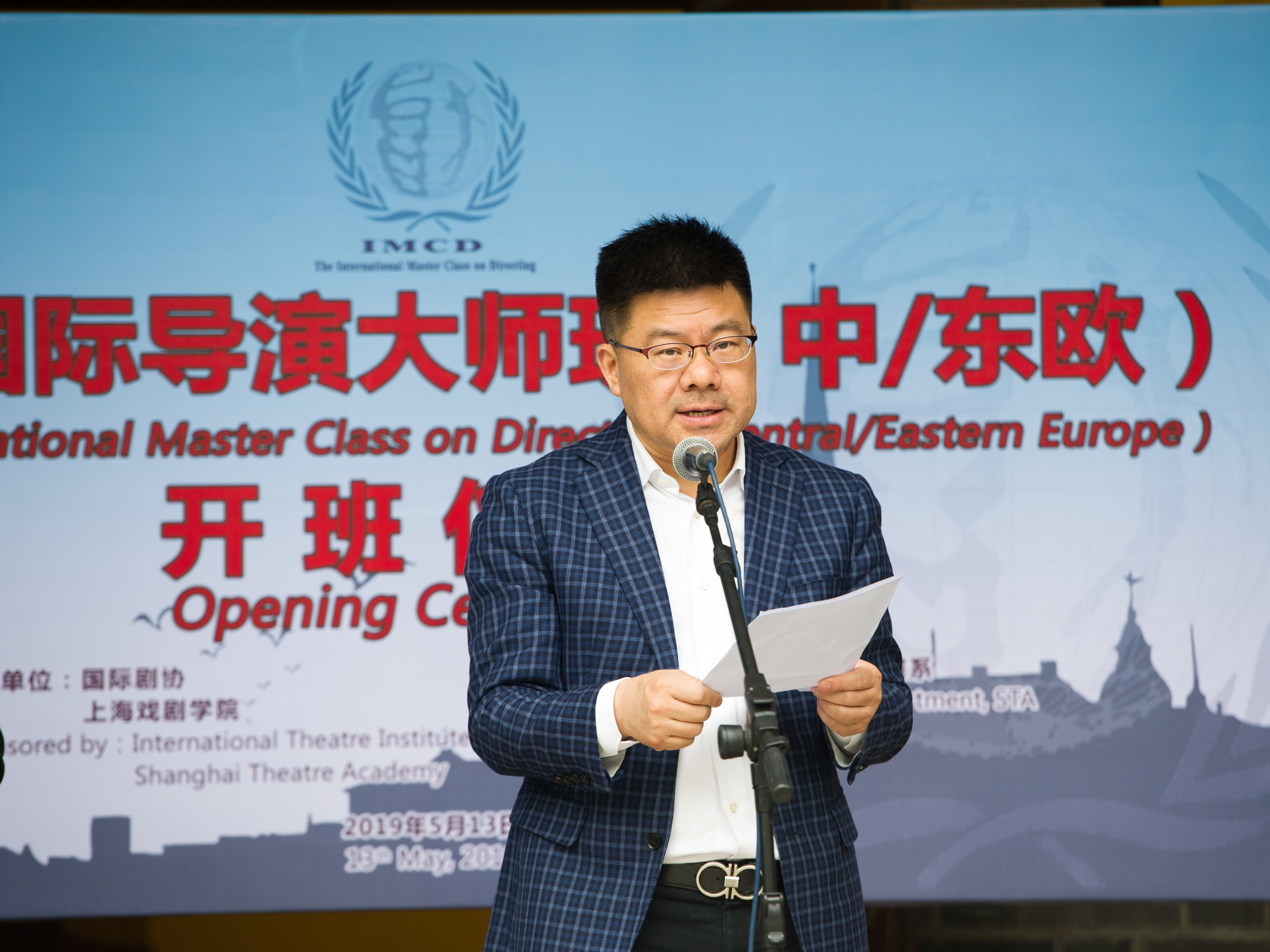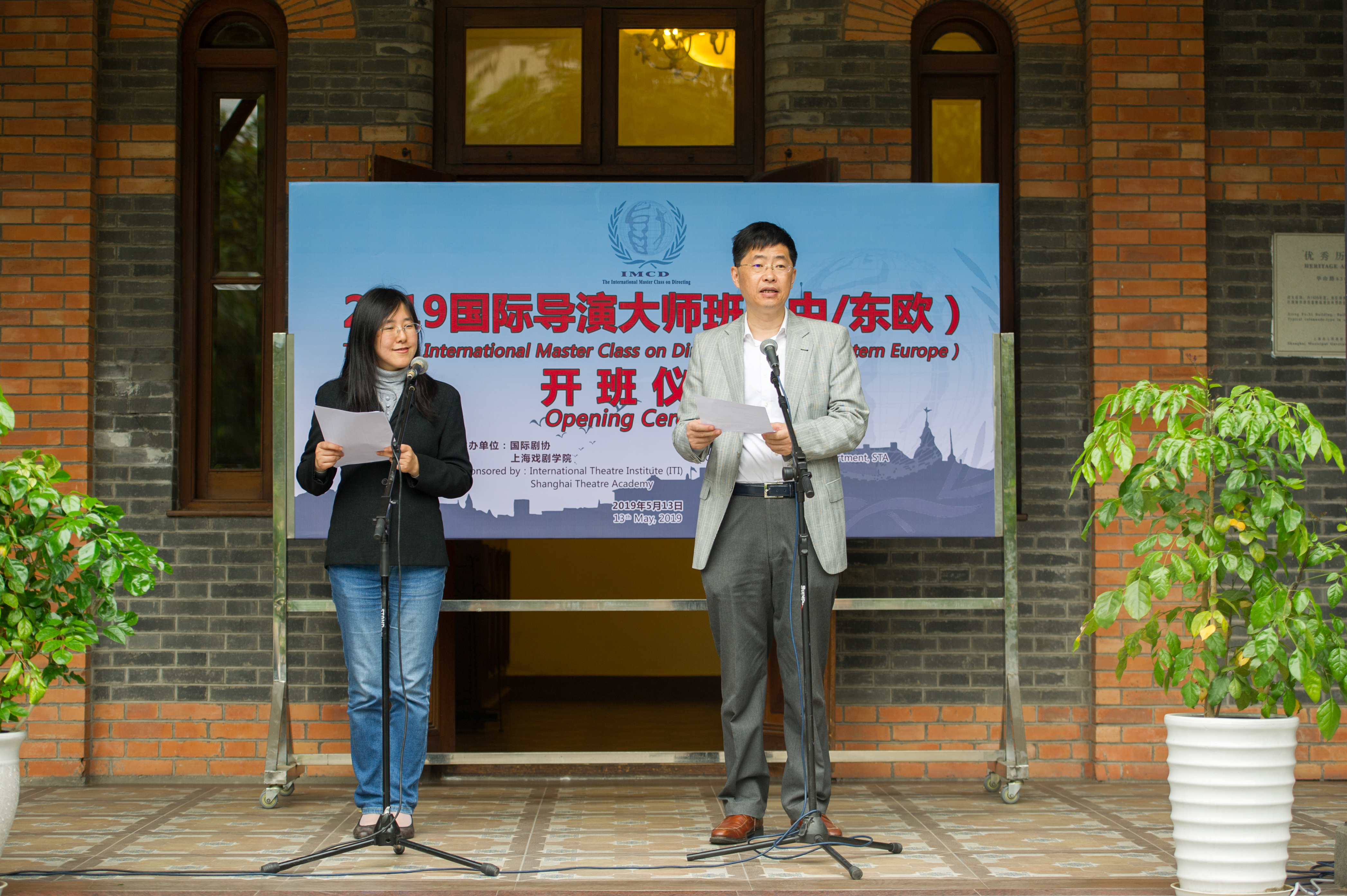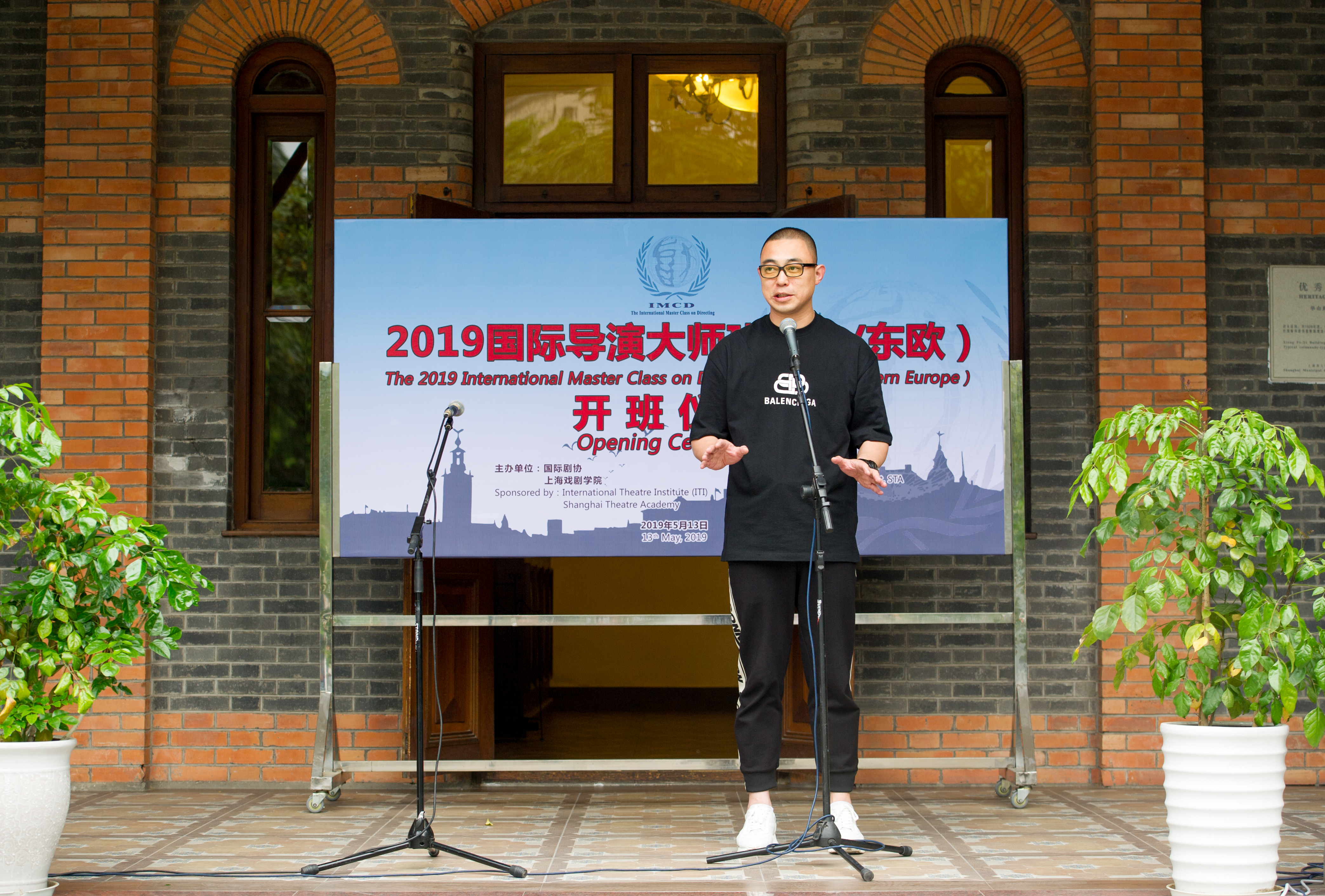 5月13日上午10:30,2019国际导演大师班(中/东欧)开幕仪式在佛西楼广场如期举行。上海文化基金会秘书长郦国义,国际剧协总干事托比亚斯,上海戏剧学院党委书记谢巍、院长黄昌勇、导演系主任卢昂等出席了此次开班仪式。仪式由上海戏剧学院副院长杨扬主持。