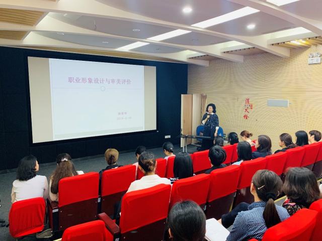 活动中,徐家华教授用生动形象的事例和图文展现了职业形象的重要性。她指出职业作为一个社会角色,需要经过“认同”,证明其实际地位、身份等与所承担的角色相一致,而角色的认同是在长期社会互动中完成的。因此职业形象要符合社会与公众的期望、得到社会认同。徐教授还分享了舞美系历年“着色”项目的学生作品,在品鉴不同服装造型的同时,也让各位老师了解到艺术创作的不易。讲座的后半部分,徐家华教授还邀请冯燕容老师现场指导老师如何通过化妆来提升个人气质和形象水平。两个多小时的沙龙活动,老师们都意犹未尽,希望下次还可以再举办类似的活动。