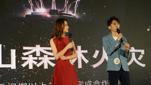 图为我校选手吴冠宇、闫金茜进行主持展示