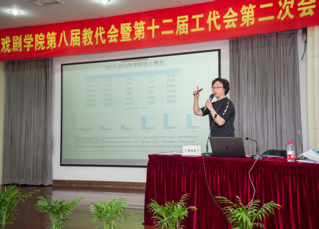 总会计师张佳春作《2018年度上海戏剧学院财务决算方案及2019年财务预算方案》工作报告,向全体代表报告了学院2018年财务决算情况、财务工作成效以及2019年预算方案、财务重点工作,并简要介绍了财务工作面临的新形势和新要求。
