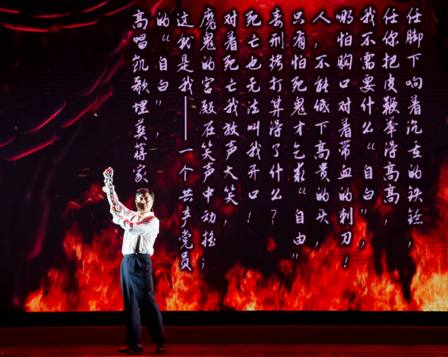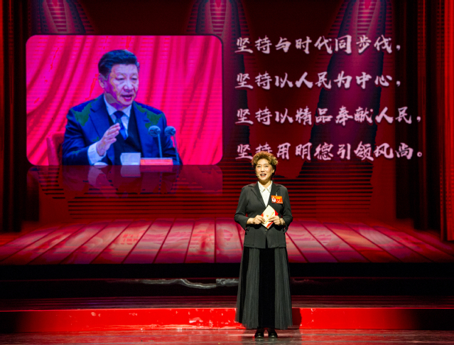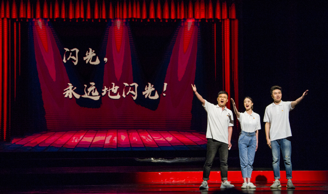 此外,这堂戏剧党课还配备了几组主讲人,他们中有退休党员教师舒蓉,著名戏剧表演艺术家、上戏校友张先衡,上戏中青年党员教师及年轻的大学生党员等,以各个年龄层次体现了上海戏剧学院建校七十多年来在培养“爱国家、爱民族、辨是非、有情操的人”,以及为人民而创作等方面的传承与坚守。主讲人之一——上戏教师王苏,近年来创立了在社会上产生广泛影响力的朗诵品牌“品读”。她在这堂戏剧党课中,带领学校师生再次以“品读”的方式深情演绎了革命烈士的家书,还亲身讲述了自己作为全国政协委员,今年参加全国“两会”期间,聆听习近平总书记看望文艺界社科界委员时发表的重要讲话的感受。