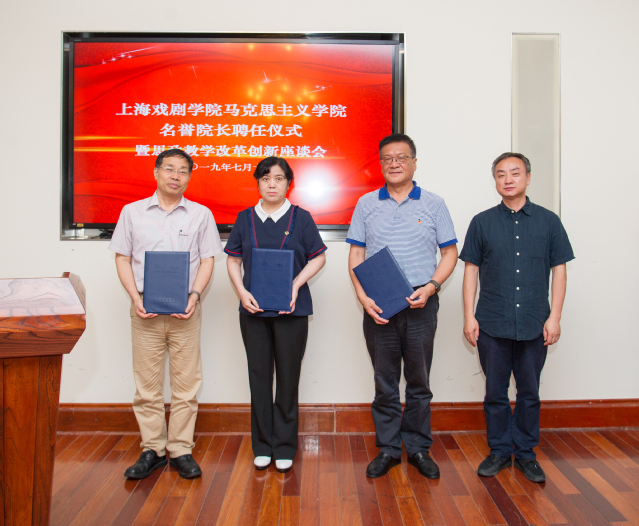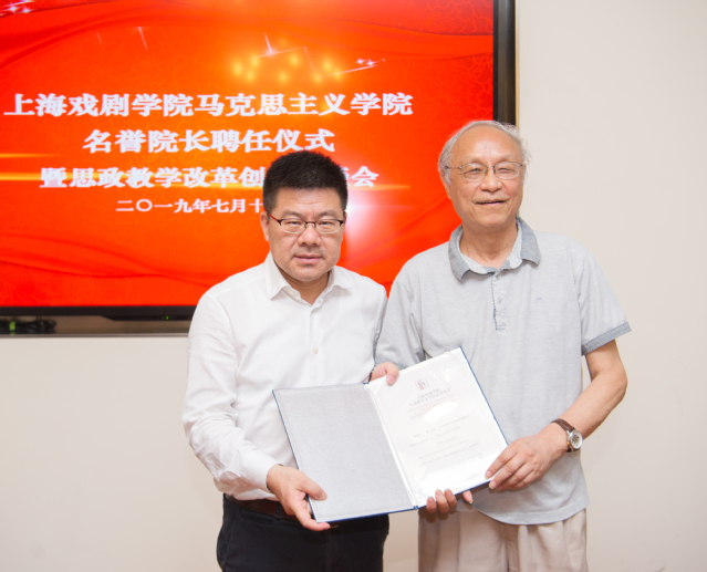 2019年7月11日下午,上海戏剧学院马克思主义学院名誉院长聘任仪式暨思政教学改革创新座谈会在佛西楼二楼西会议室召开。会议由校党委副书记胡敏主持,校党委书记谢巍,校党委副书记、院长黄昌勇,副院长杨扬,副院长刘庆,各职能部门负责人,校内外专家学者,艺术学理论教师,以及马克思主义学院全体教师出席了此次会议。