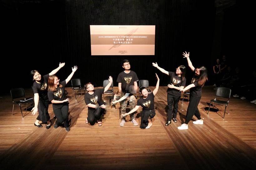 结业仪式由陆军教授主持,教学主管张文军主任对本期工作坊的教学工作进行了总结。两位班长代表全体学员发言,深情地回顾了此次学习经历——聆听大师讲座,熬夜创作剧本,冒着酷暑采风,更难忘剧本朗读会的紧张排练和精彩演出……真挚动情的话语不但引起所有师生的共鸣,也深深打动了在场的市教委及校领导,倪闽景副主任、胡敏副书记、张伟令副书记、苏忱秘书长对工作坊教学团队的工作热情和所有学员的学习热情给予了高度赞扬,充分肯定了工作坊取得的教学成果及其产生的社会效益,并对所有学员提出殷切的期望,希望他们能够将戏剧的种子和这一份艺术情怀撒播到各处的校园,点亮更多人心中的戏剧之光。