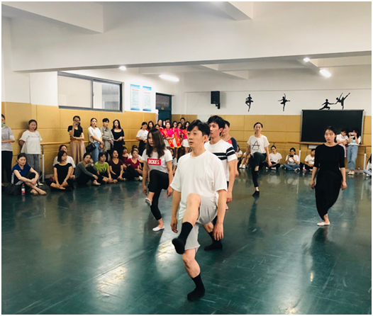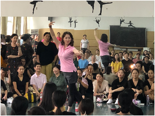 由舞蹈学院党总支书记、副院长张麟老师与舞蹈表演系主任庄丽老师赴信阳职业技术学院开展讲座与工作坊,上午张麟老师做了《舞蹈创作中的动作构筑及语言创生问题与对策》的讲座,深入浅出地为信阳当地舞蹈团与舞蹈专业老师讲述了舞蹈的构成、空间的结构、舞蹈肢体发展的可能性等重要理论焦点与问题,下午开展了《舞蹈工作的构筑》的工作坊,得到了在场学员们的一致好评。庄丽老师同样开展了《中国古典舞身韵》的舞蹈工作坊,现场前来参加学习的学员将不大的练功房围得水泄不通,连庄老师演示的空间都几乎被挤满了,庄丽老师从中国古典舞身韵提和沉的发力方式,再到古典舞的几个手位和手型,双晃手组合等进行了训练,学员们受益颇多。