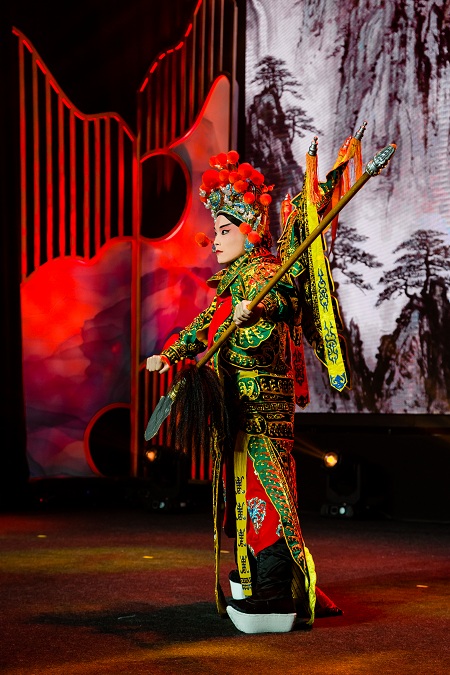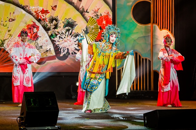 位于外场的“非遗”展示区域,戏曲生、旦、净各行当鲜明的人物造型充分体现了中国文化元素,吸引来宾纷纷驻足,争相合影留念。