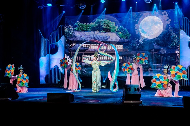 闭幕式十分钟表演环节,我校舞蹈学院的姑娘们身着旗袍、手持纸扇,舞动着婀娜身姿,充分展示了海派文化、江南文化的独特韵味。