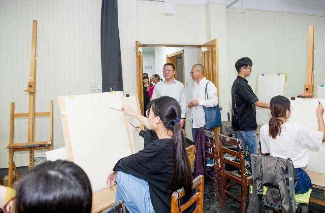 今天(9月2日)是我校2019-2020新学期开学第一天。上午8:00,我校华山路校区由党委书记谢巍带队,莲花路校区由党委副书记、纪委书记周银娥,副院长唐立兔带队,虹桥路校区由副院长刘庆、杨扬带队,会同党院办、教务处、宣传部等职能部门以及各院系负责人,分别巡视了教室、画室、形体房、琴房、剧场、机房等教学场所,对教师授课、学生出勤、课堂纪律、教学环境等内容进行了视察。