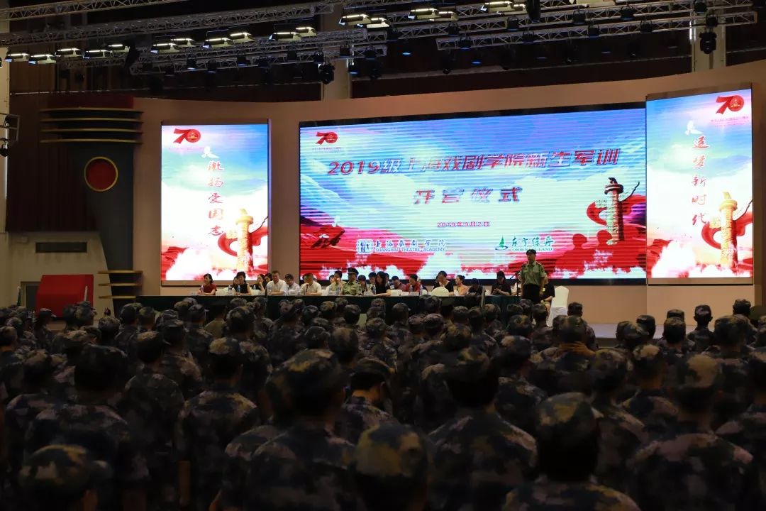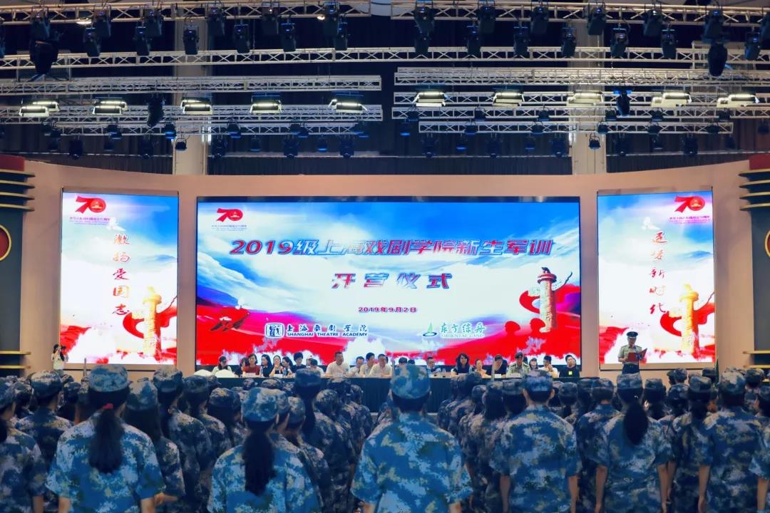 2019年9月2日上午11时00分,上海戏剧学院2019级新生军训开营仪式在东方绿舟举行。上海戏剧学院党委副书记、副院长张伟令,学工部、武装部、各院系领导、承训部队官兵以及464名新生出席了开营仪式,开营仪式由军训副总指挥、武装部部长、后勤保卫处处长陈昌富主持。