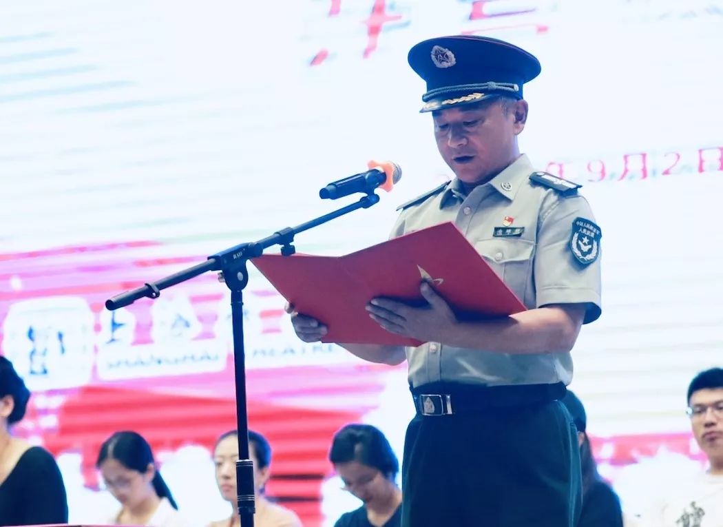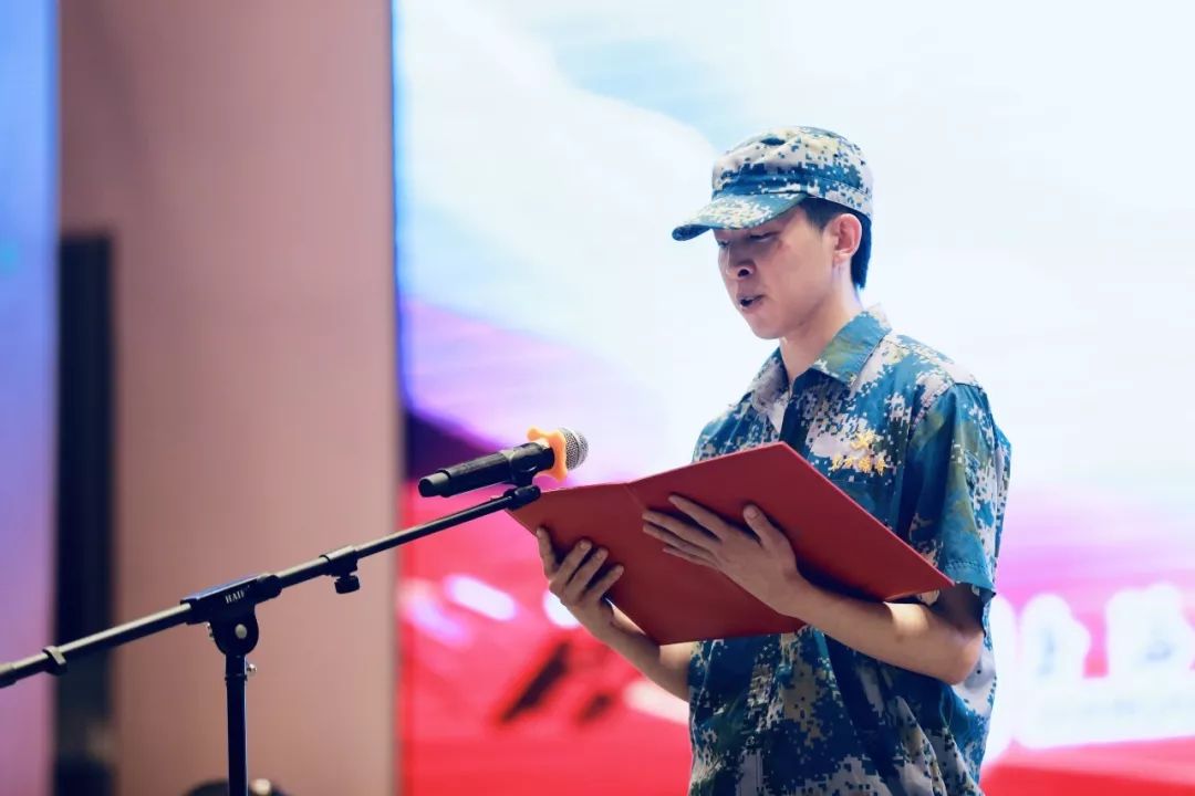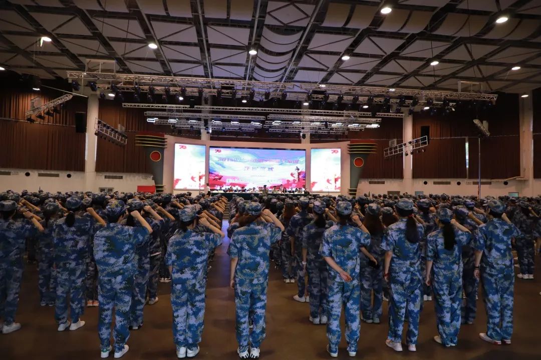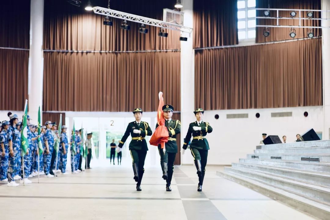 开营仪式在庄严的升国旗、奏唱国歌仪式中正式开始,全体新生在军训总教官的带领下面向国旗庄严宣誓,发出新时代的青春之声。