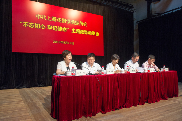9月12日下午,中共上海戏剧学院委员会“不忘初心、牢记使命”主题教育动员会在新实验空间剧场举行。市委第九巡回指导组成员、上海戏剧学院党政领导班子、“不忘初心、牢记使命”主题教育领导小组及办公室全体成员、全体中层干部、各基层党组织书记及其他支委、退休领导代表、优秀党员代表、党外代表等出席。会议由党委副书记、院长黄昌勇主持。