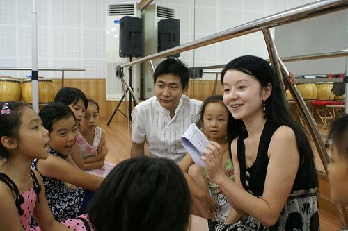值得一提的是,在第一天的课程中我们看到了熟悉的身影,她是我校毕业的知名主持人沈婷,她正在一字一句地教小朋友练习台词。沈婷说:“我觉得我们这些主持人也应该为孩子们做点事情。”在接下来的课程中,本次活动还邀请了贝贝、妮妮、浩天、海燕等知名主持人,一起义务为这些民工子弟教学指导。让孩子们与明星教师面对面交流,透过这些明星感受上海大都市的独特艺术魅力。