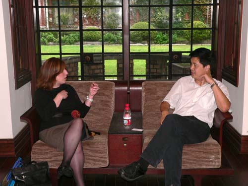 图为孙惠柱副院长和奥利维斯基女士亲切交谈