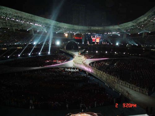 北京时间2007年10月2日晚上7点整,本届世界夏季特殊奥林匹克运动会在上海体育馆拉开了帷幕。国家主席胡锦涛宣布特奥会开幕,参加本次特奥会的还有各国领导、上海市领导,国际特奥会主席,和许多大牌明星,当然在场所有的特奥运动员才是当晚当仁不让的主角。我校的数百名师生代表有幸参与这次这次盛大的开幕式,见证了这个举世瞩目的时刻。