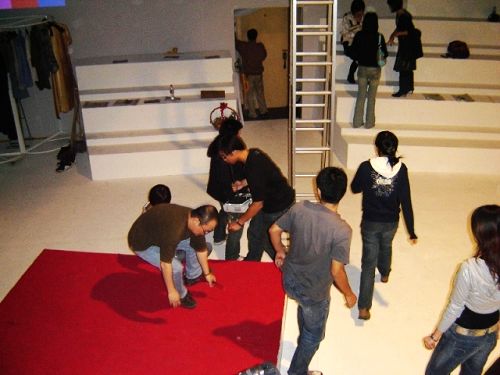 这次上演的《哈姆雷特:那是个问题》话剧由中美合作而成,导演理查•谢克纳教授来自美国纽约大学,饰演奥菲利娅的演员林真华也是美国归来的表演艺术硕士。其他角色的扮演者大都由我院表导演系的老师及学生担任,演出阵容可谓十分强大。在展演过程中可以清晰地看到演员在处理各种感情戏时的复杂表情,他们出色的演技将观众带入了戏剧的世界。05届导演系王萌同学也是演员之一,他在接受记者采访时谈到了导演在排练时所加入的创意:“导演希望将我们排练时的一些内容也展现给观众,就像我们在剧中过场时的拖把舞,因为每次排练前导演都会叫我们把地拖干净,所以他想选择这个方式。可能之前观众们所看到的仅仅是过场,但最后当许多角色都死去了,我们再次拿起拖把去拖地时,就引出了人们的思考,这是在洗涤一个人生前的罪恶,这是在把污浊的血迹擦试干净。”