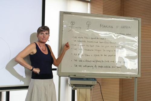 讲座上,Carolin女士详细阐述了何谓创造力思维、何谓创造力、产生创造力的条件以及激发创造力的技巧。旁征博引的讲授、具体形象的课件,及生动有趣的小游戏穿插课间,不仅增强了讲座的有效性、针对性、实用性,也使得近三个小时的讲座浑然一体,在不知不觉中接近尾声,令人意犹未尽。讲座结束后,学生们就相关问题与Carolin女士展开讨论。