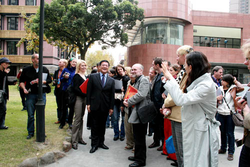 座谈会后,德国青年代表团一行还参观了我院华山路校区校园。参观结束后,代表团一行在外办主任金永林与团委书记陈云的陪同下驱车前往莲花路校区,在莲花路校区排练教室听取了戏曲学院院长徐幸捷的介绍,并兴致盎然地观看了戏校学生表演的戏曲节目。短短两个多小时的参观访问令德国青年代表团印象深刻。