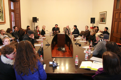 2006年9月,温家宝总理访问德国期间邀请德国400名青年于2007年起访华。此次来我院的德国青年代表团是团中央国际联系部联系的第三批德国青年代表团一行100人中的一部分。此团由德政界和文艺界杰出青年代表组成,成员包括年轻联邦议员、主流政党和政治青年组织负责人以及德文艺界青年代表。代表团大部分团员出生于上世纪七、八十年代,在德政治、文化和社会领域较为活跃。