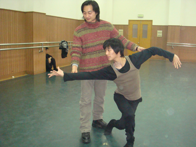 图为:04级古典舞专业班主任丁建勇老师在给学生做指导