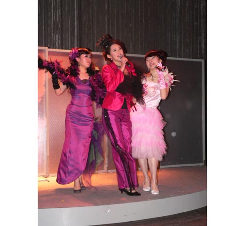 值得好好称赞一番的是,台上这些发挥自如的演员们是来自继续教育学院06级表演大专班的同学们,虽然仅有两年的在读学程,但他(她)们所面对的这台剧目,反映的却是20世纪60年代香港丽花皇宫夜总会四个年轻歌女的凄苦故事,对于剧本的拿捏与演绎,可以说是对于这些年青的学子所面临的巨大自我挑战。同样地,从剧本的内容到各个角色的戏份演绎也同样非常吃重,特别是扮演姚小蝶、金露露、莲茜和凤萍四位歌女的同学。