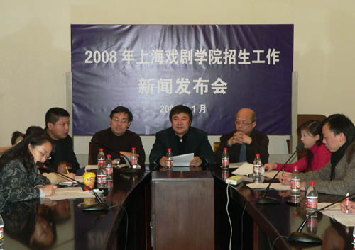 1月8日,我校08年招生新闻发布会在佛西楼召开。会议由宣传部长张生泉主持,主持工作的副院长韩生、教务处长陈其毅、表演系系主任龙俊杰分别在会上向各位到会者介绍了08年我校招生情况。招生新闻发布会的召开,标志着我校2008年招生考试工作全面启动。