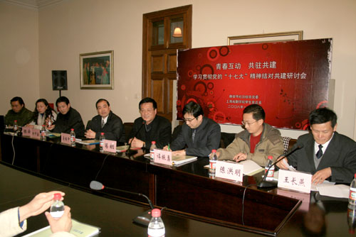 今天下午2点,由静安寺社区综合党委、上海戏剧学院学生党总支共同举办的“青春互动 共驻共建”学习贯彻十七大精神结对共建研讨会在佛西楼会议室召开。静安区社会工作党工委副书记谭振勇;静安寺社区综合党委书记吴瑞中;静安寺社区专职党群工作者马晓鹰;我校副书记、副院长葛朗;学生处处长邱中岳;团委书记陈云以及我校专职学生辅导员、静安社区和我校学生党总支的党员约50余人参加了研讨会。会议由静安寺街道综合党委副书记、上海市优秀共产党员王长燕主持。