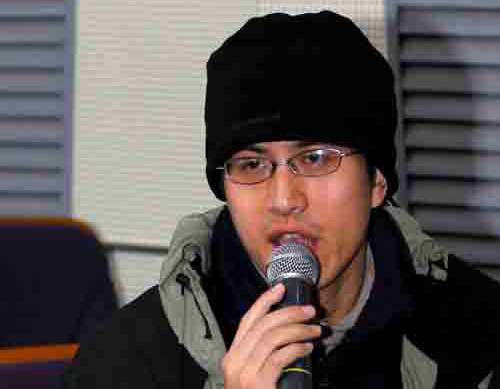 图为洁瑞・胡勒汉在做讲座