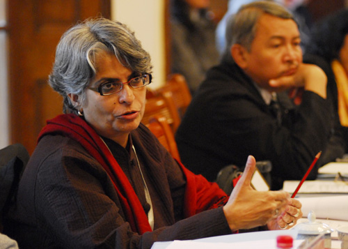 图为与会嘉宾印度新德里国立戏剧学校校长Anuradha Kapur发言