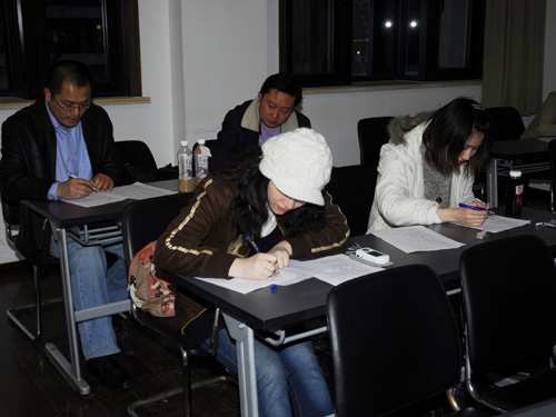 图为继续教育学院艺术管理07级学生在做奥运测试卷