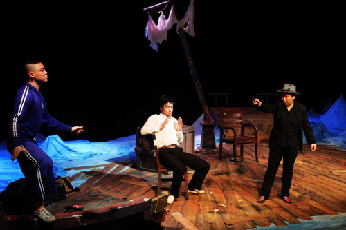 四月七日晚七点半,黑匣子剧场座无虚席。由我校研究生通力合作创作的独幕剧《茫茫海上》成功上演。该剧是根据波兰剧作家斯拉沃米尔・穆罗热克的原作改编的,剧作用三个沉船幸存者在海上流浪的情境编织了一个关于人与人、人与群体和社会的多义性隐喻。