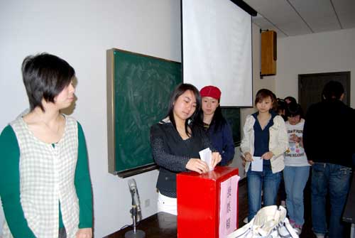 本次学代会的主要议程包括听取和审议由学生会主席惠�作的《戏文系第一届学生会工作报告》,以及选举产生新一届的学生会委员。工作报告回顾了戏文系学生会成立一年来的工作成绩,总结了工作开展中的不足和局限,为以后的学生会工作作出展望。随后经过充分酝酿、民主选举,产生的11名学生委员候选人纷纷上台发表竞选宣言,代表们认真填写选票,行使民主权益,苏杭、徐超等9名同学脱颖而出,成为新一届系学生会委员。