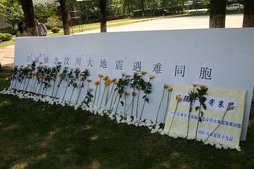 应国务院号召,2008年5月19日14时28分,我校莲花路校区200多名师生自发集合在校园的草坪上,为四川汶川大地震中死难的同胞默哀。