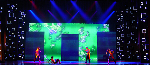 该项目总导演刘志新老师介绍说:新媒体舞诗《文明・图腾》是2008年上海市教育高地项目,主要以虚拟实验室、舞蹈学院、导演系、戏文系、舞美系、戏曲学院、电视艺术学院等部门的年轻老师为骨干创作团队,用集成创新的思路,将信息技术与学校独特的艺术创作资源结合在一起,创新性地把舞蹈语汇、数字影像、空间造型、环绕音效与光色变化融为一体,形成了一部戏剧、电影、舞蹈、动画、文字、声音等多种媒介元素交互叙事的新媒体舞蹈诗。