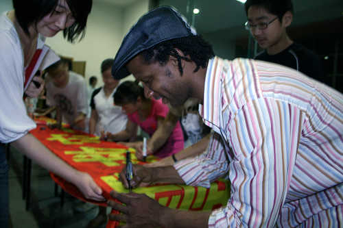 5月23日晚7点30分,由电视艺术学院06主持发起和策划的题为“这一刻,我们……”赈灾演出于莲花路校区新剧场拉开序幕。来自电视艺术学院、戏曲学院、舞蹈学院、表演系、舞台美术系等多个院系的同学共同参与了此次演出。团委陈云老师、徐晶老师,学生处张国丽老师,电视艺术学院吴洪林老师、宋怀强老师、赵武老师等也前来观看了晚会。场内座无虚席,很多同学站着看完了整场演出。我校的留学生们也从华山路赶来观看,并在门口团结抗灾的红色条幅上签名。